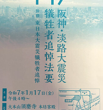 ■日 時 : 令和7年1月17日(金) ■時 間 : 午後4時より ■場 所 : 大本山・須磨寺 ■主 催 : 神戸市佛教連合会 あの日のことは決して忘れない。 1月17日午前5時46分。 あれから30年。 あの日のこと […]